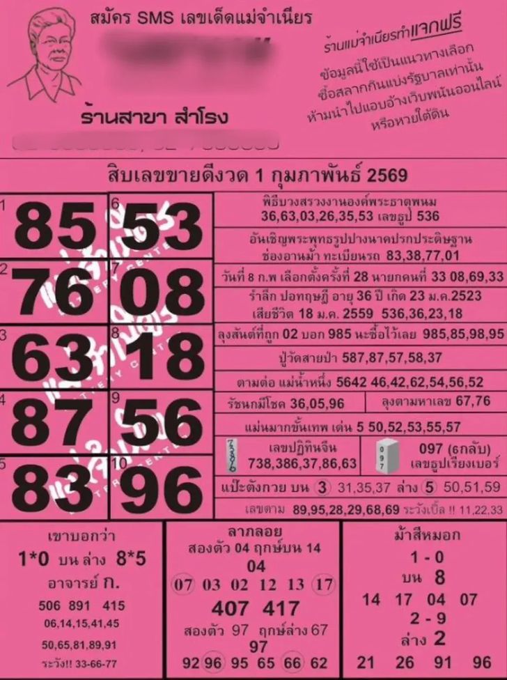 หวยแม่จำเนียร 10 อันดับเลขขายดี งวด 1 ก.พ. 2569 เลข 85 มาแรง โค้งสุดท้ายงวด 1/2/69 โค้งสุดท้ายก่อนการออกรางวัลสลากกินแบ่งรัฐบาล งวดวันที่ 1 กุมภาพันธ์ 2569 บรรดาคอหวยเริ่มกลับมาจับตา “โพยใบชมพู” หรือที่รู้จักกันในชื่อ หวยแม่จำเนียร อีกครั้ง เพราะถือเป็นหนึ่งในแหล่งรวมเลขขายดีจากแผงใหญ่ที่ถูกพูดถึงทุกงวด โดยเฉพาะงวดนี้ เลข 85 ขึ้นแท่นอันดับ 1 แบบชัดเจน สะท้อนกระแสความสนใจของผู้ซื้อในช่วงใกล้วันประกาศผล บทความนี้จะพาไปสรุปทั้ง 10 อันดับเลขขายดี, ที่มาของกระแสเลขแรง รวมถึงเหตุการณ์สำคัญที่ผู้คนนำมาเชื่อมโยงเป็นแนวทางก่อนตัดสินใจ 10 อันดับเลขขายดี หวยแม่จำเนียร งวด 1/2/69 กระแสเลขขายดีจากการรวบรวมข้อมูลแผงใหญ่ในช่วงโค้งสุดท้าย มีตัวเลขที่ถูกจับตามองดังนี้ อันดับ 1: 85 อันดับ 2: 76 อันดับ 3: 63 อันดับ 4: 87 อันดับ […]