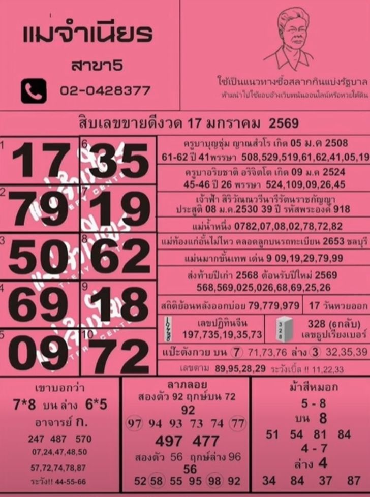 หวยแม่จำเนียร 17/1/69 | 10 อันดับเลขเด็ดขายดี งวดนี้มาแรง 17-79 ใกล้ถึงวันประกาศผลสลากกินแบ่งรัฐบาล งวดวันเสาร์ที่ 17 มกราคม 2569 (17/1/69) บอกเลยว่ากระแส “เลขเด็ดงวดนี้” เริ่มร้อนขึ้นเรื่อย ๆ โดยเฉพาะสายที่ชอบตาม เลขขายดีจากแผงดัง จะต้องคุ้นชื่อกันดีอย่าง “หวยแม่จำเนียร” หรือที่หลายคนเรียกกันว่า “ใบชมพู” ซึ่งเป็นชุดเลขที่มักถูกกวาดซื้อเร็ว เพราะเป็นเลขยอดนิยมที่คนไล่ตามกันทุกงวด งวดนี้เองมีคู่เลขที่ถูกพูดถึงหนักมากคือ “17-79” จนกลายเป็นคำค้นมาแรง ทั้ง หวยแม่จำเนียร 17/1/69, 10 อันดับเลขขายดี, และ เลขเด็ดงวดนี้ 17/1/69 ใครกำลังอยากได้แนวทางแบบสรุปไว อ่านง่าย และเอาไปตัดสินใจซื้อได้เลย บทความนี้รวมให้ครบครับ 10 อันดับเลขขายดี หวยแม่จำเนียร งวด 17/1/69 สรุป “10 เลขเด็ดขายดี” จากหวยแม่จำเนียร งวดวันที่ 17 มกราคม 2569 (เป็นแนวทางยอดนิยมจากหน้าร้านและกระแสคนซื้อ) 17 […]